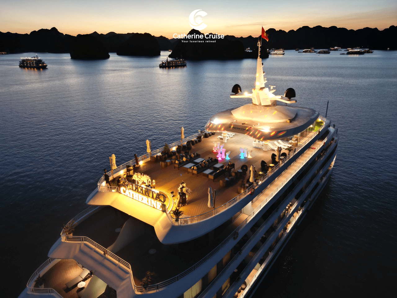 - Catherine có sức chứa khách ngủ đêm lên tới 117 hành khách với chiều dài lên tới 90m và rộng 15m.