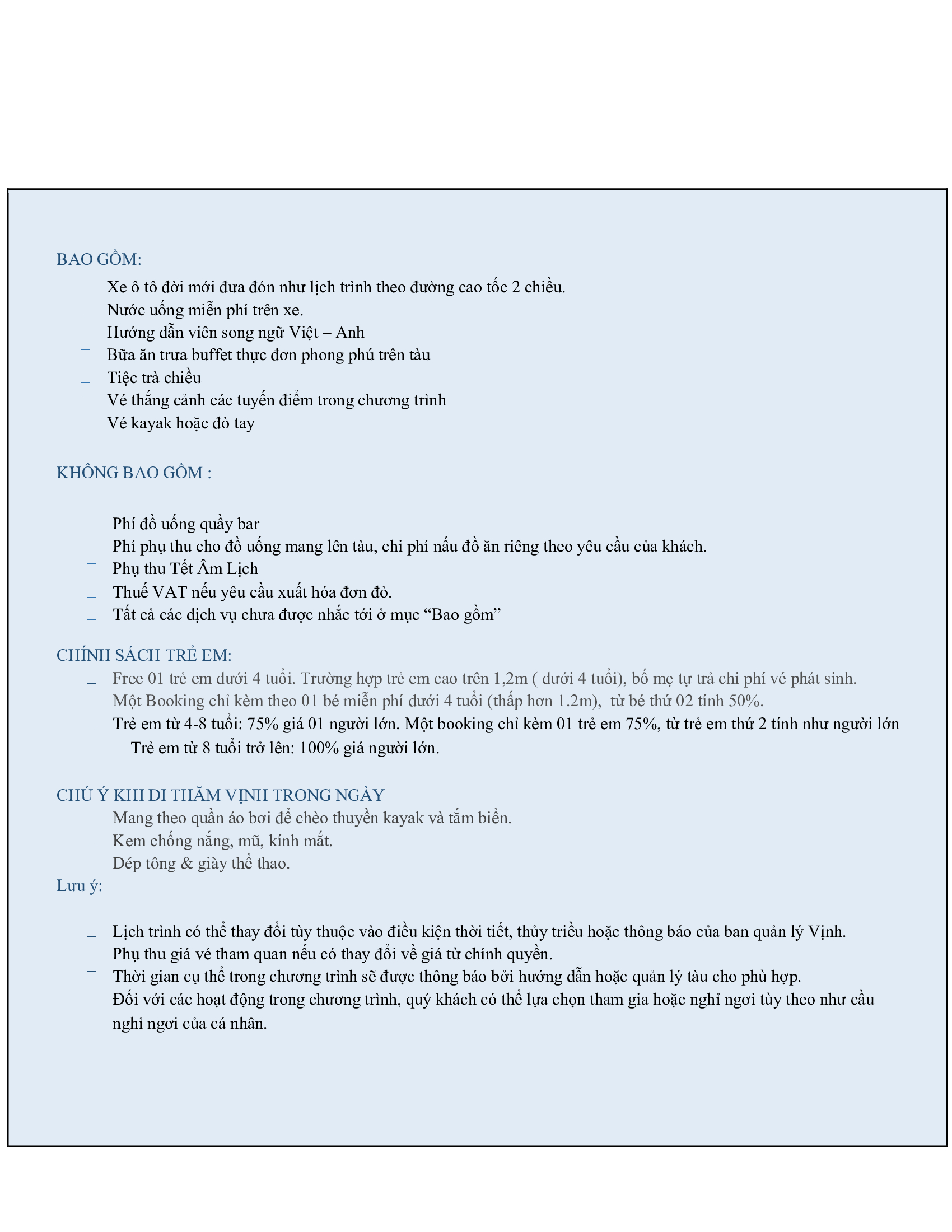 - đồng hành cùng quý khách hành trình 6 tiếng thăm trung tâm di sản – khu vực lõi Hạ Long được công nhận bởi UNESCO là 1 trong 7 kỳ quan thiên nhiên thế giới